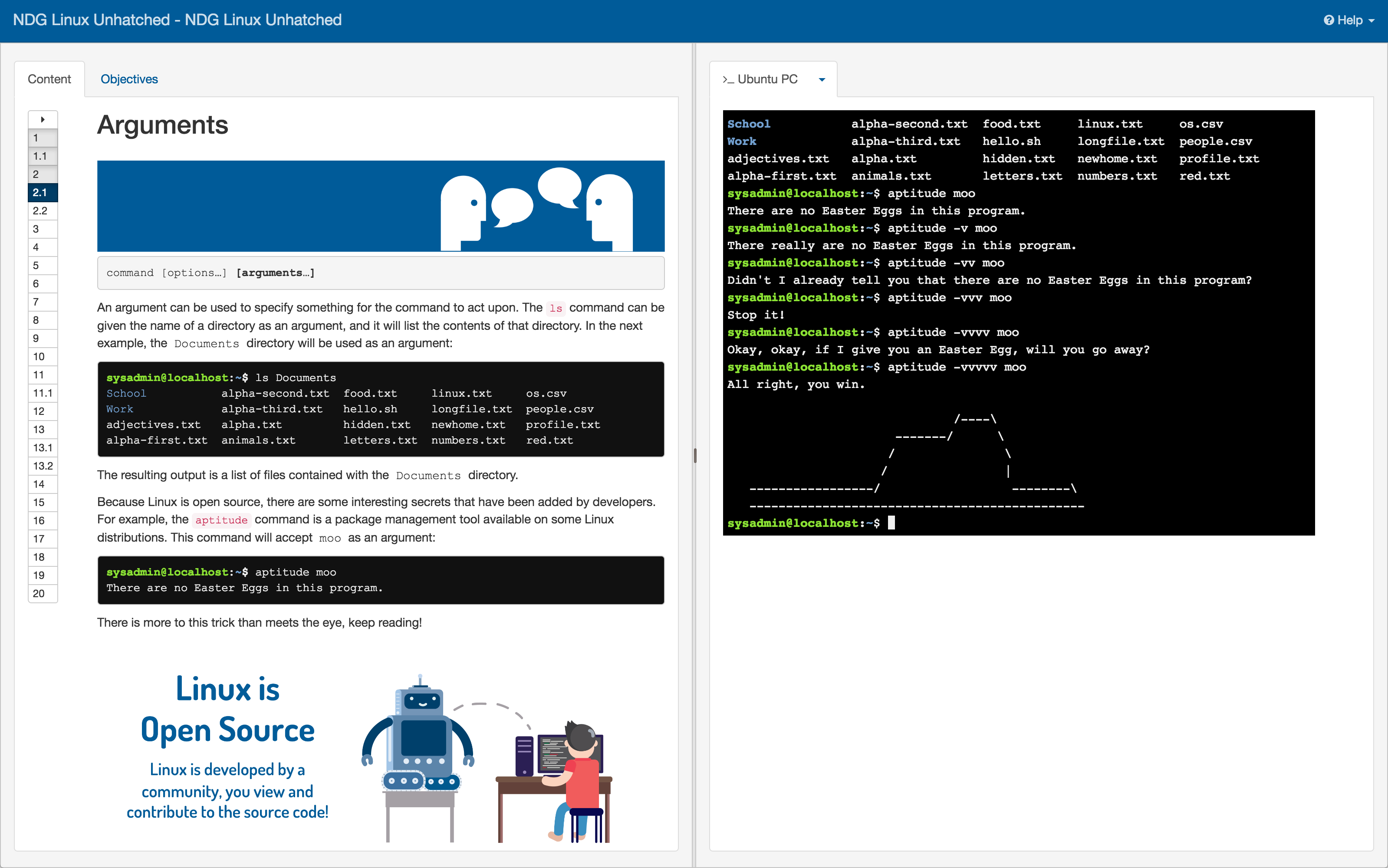 With NDG Online, there’s no need to find and install a distribution. Or even know what that is! Our courses give you a live Linux virtual machine right beside the course materials. So you can start using your new Linux skills right away.